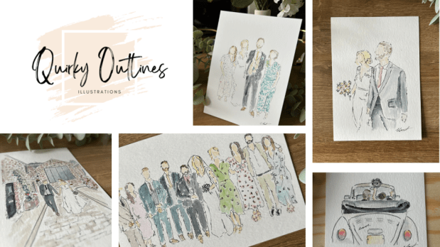 Welcome to Quirky Outlines, we offer a unique and engaging wedding entertainment service that is sure to make your special day even more memorable. We create hand-drawn portraits of your guests, providing a unique form of entertainment and a special keepsake for them to take home.